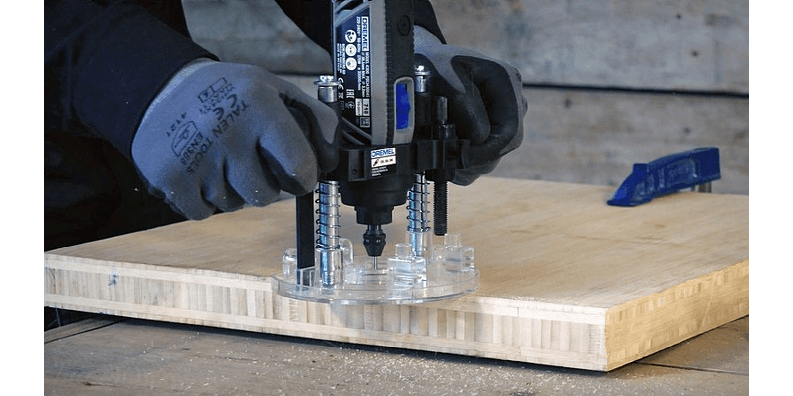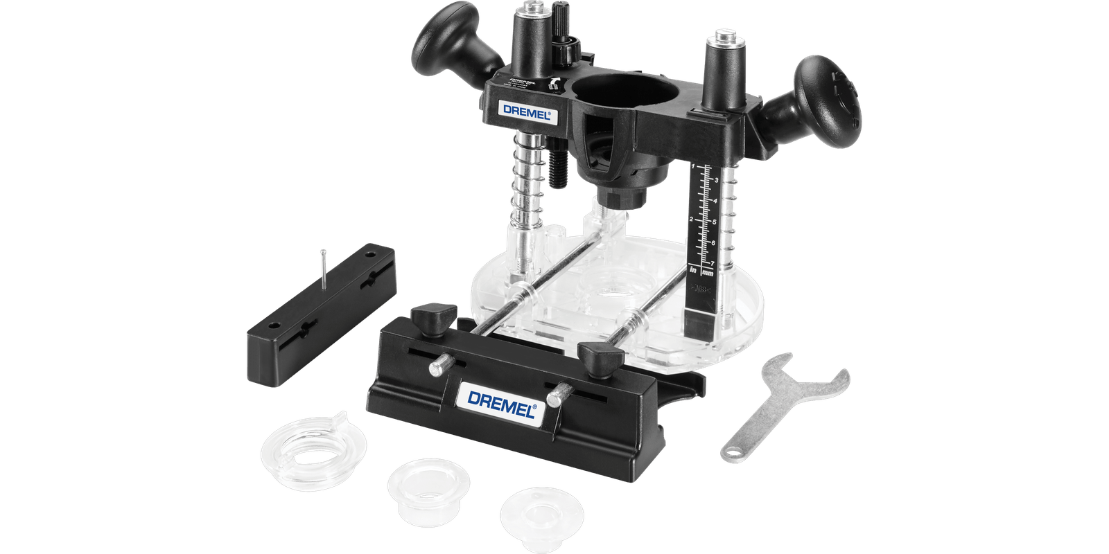 Turn your Dremel rotary tool into a compact plunge router with the 335-01 plunge router attachment and adjust to your desired routing depth up to 1.875” deepIdeal for smaller to medium sized routing projects to cut decorative edges, straight slots, rout circles, inlay work, or rout freehandClear base of the attachment ensures a clear view of your project and won't damage your materialPlunge lock-in handle for fast and easy plunge locking and two depth stops with quick release for rapid adjustment of routing depthIncludes an edge and circle guide to rout crisp straight lines and perfect circlesIncludes plunge router attachment, edge guide, circle cutting guide, and mounting wrenchCompatible with Dremel corded & cordless rotary tool models 4300, 4000, 3000, 200, 100, 8260, 8250, 8240, 8220