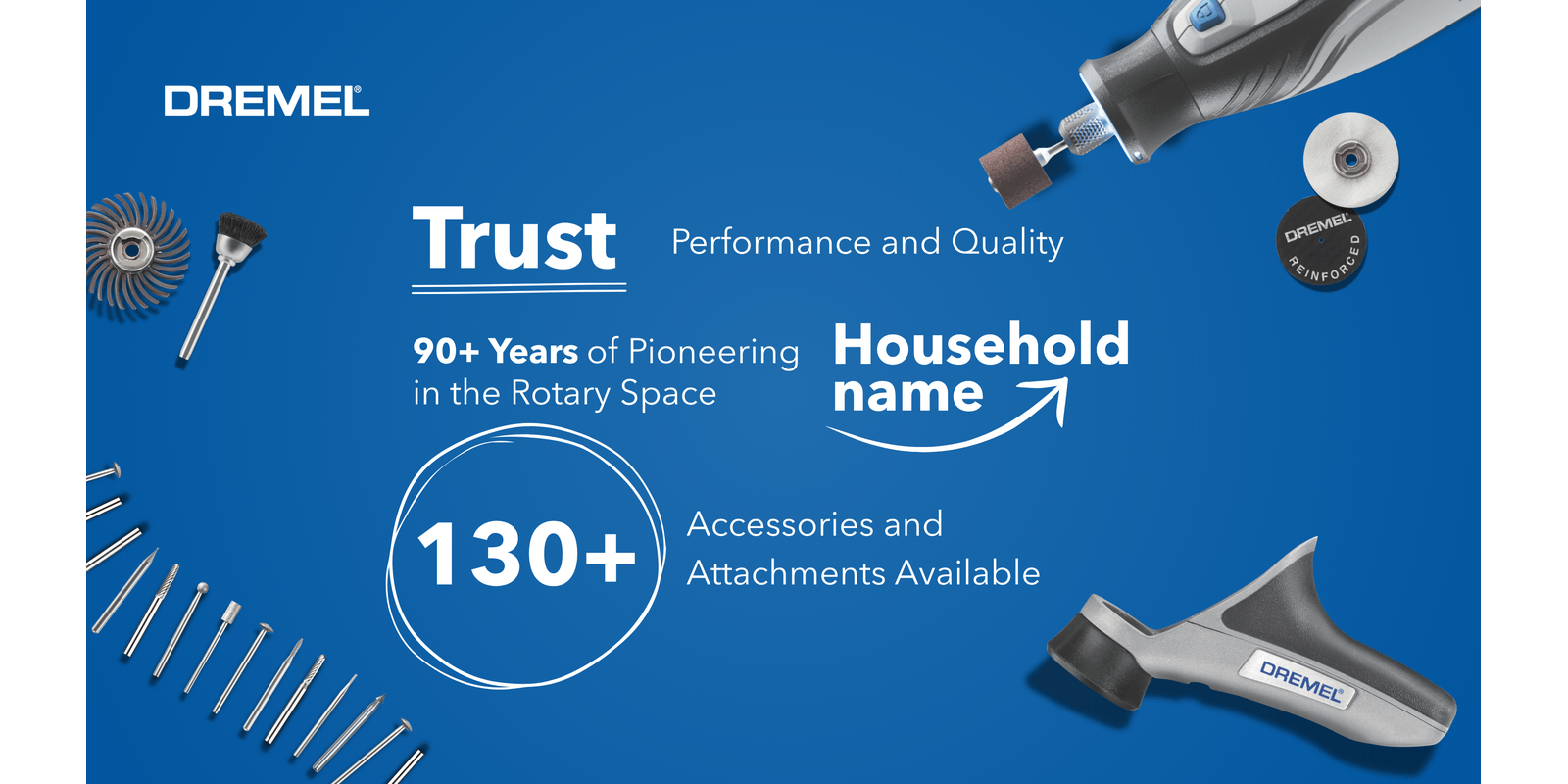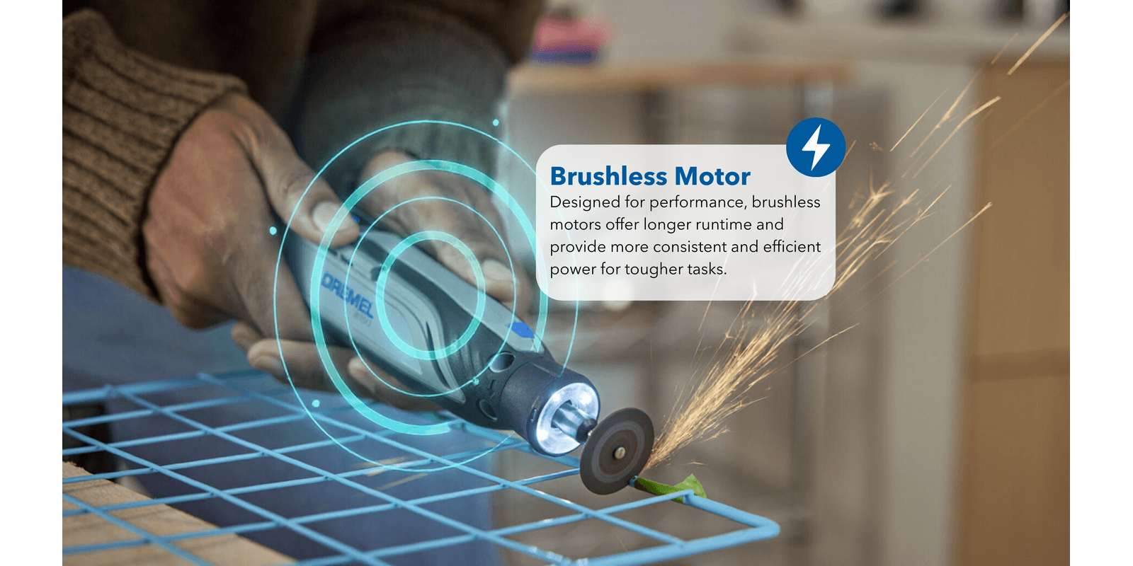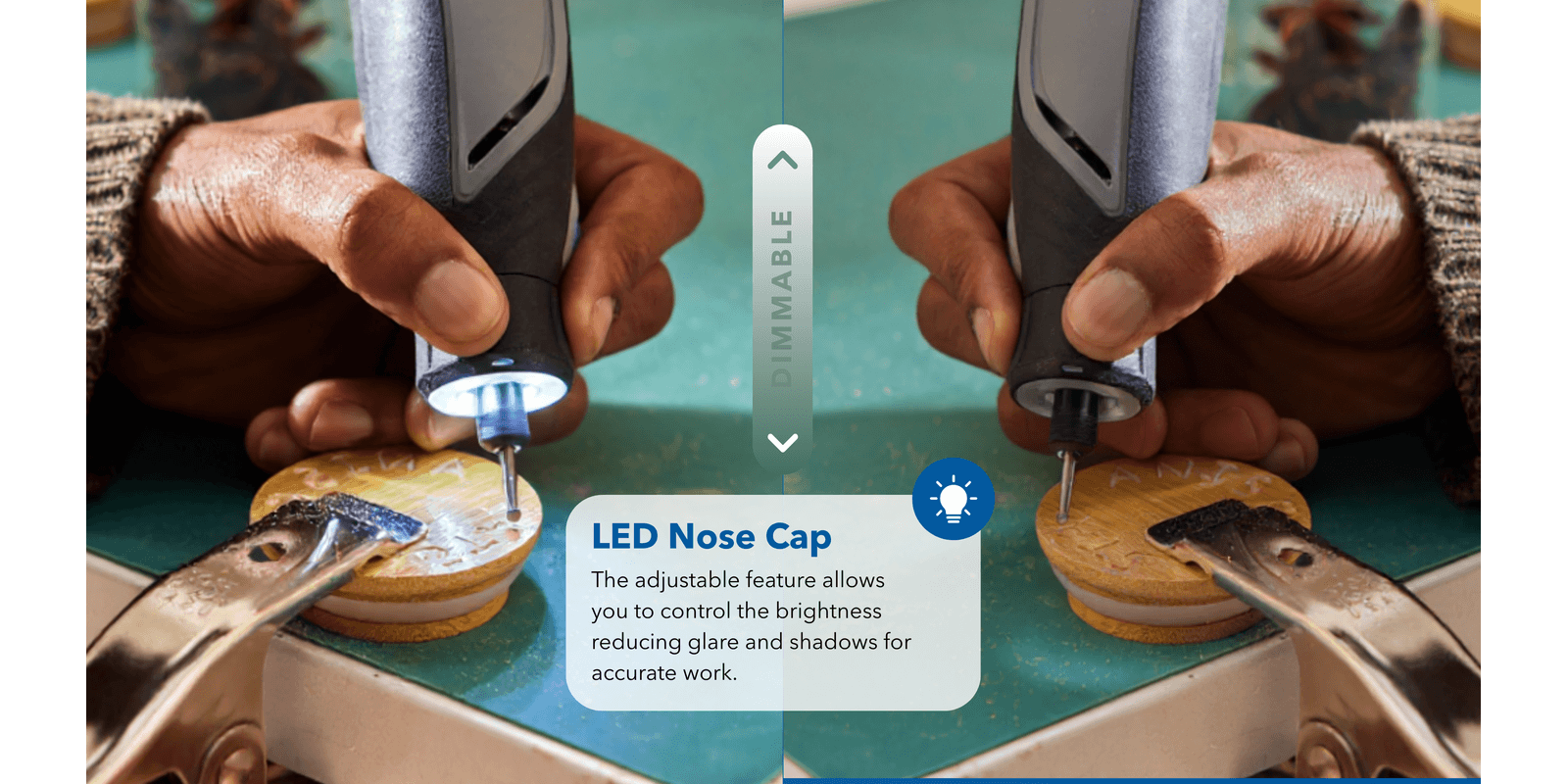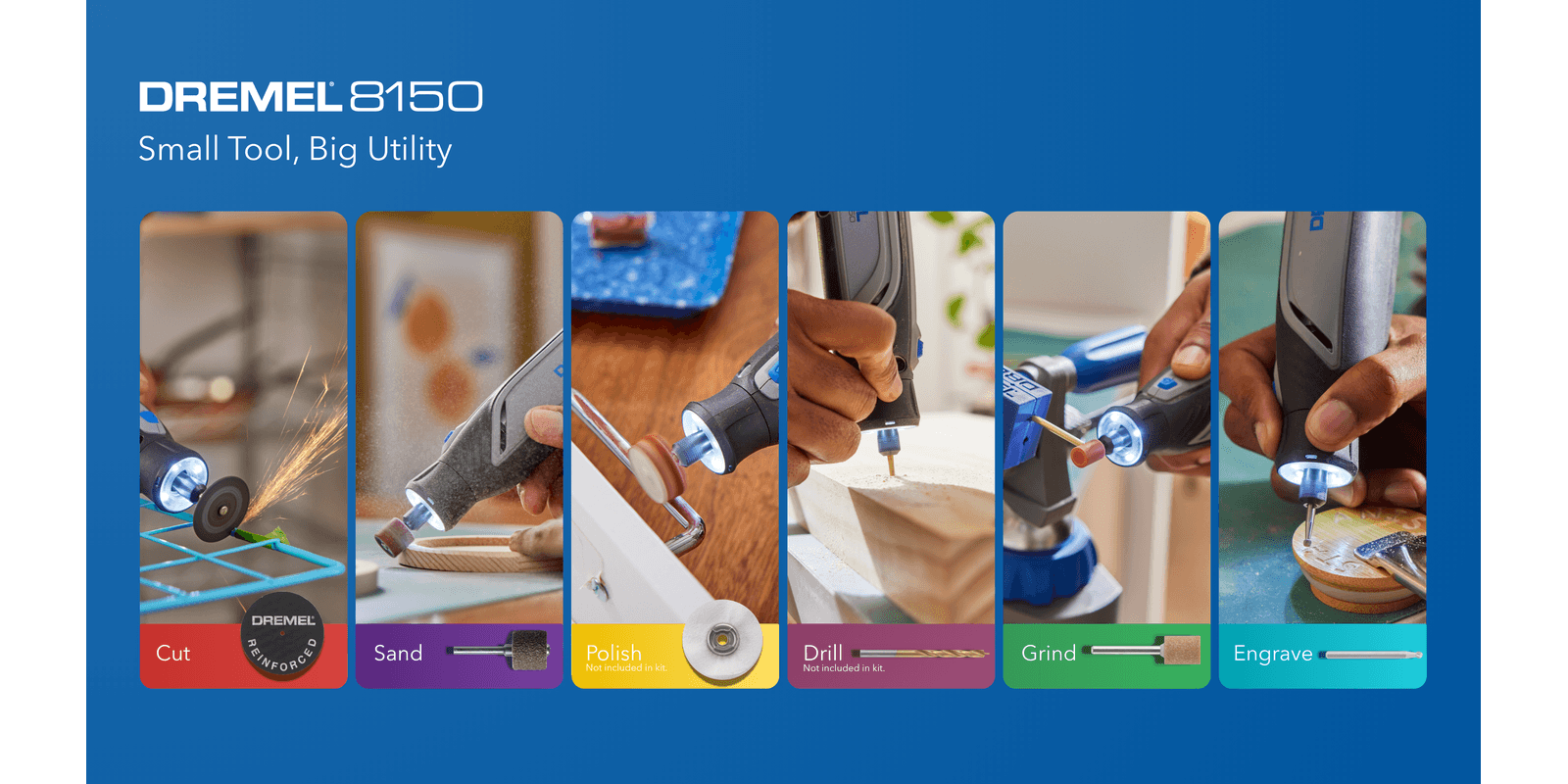 Pencil-like grip for comfort, control, and precision on detailed projectsSmall enough to store in a toolbox, garage, or drawerEngraves, cuts, polishes, sands, sharpens and moreConvenient USB-C chargingBright LED light illuminates the work areaVariable speed range of 5,000-30,000 rpm to tackle a variety of tasksFully compatible with all Dremel rotary tool accessories and attachments