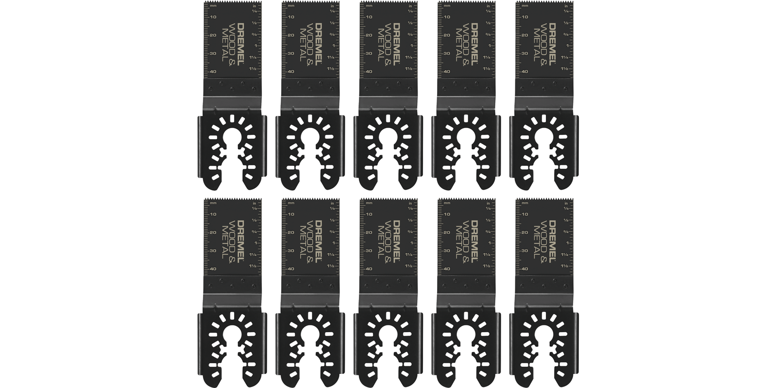 Universal dual interface directly fits all tools without adapter, excluding *StarLockDremel bi-metal blades in wood with nails provide up to 15X life vs. standard bi-metal oscillating blades in wood with nailsCarton box for quick and easy storage