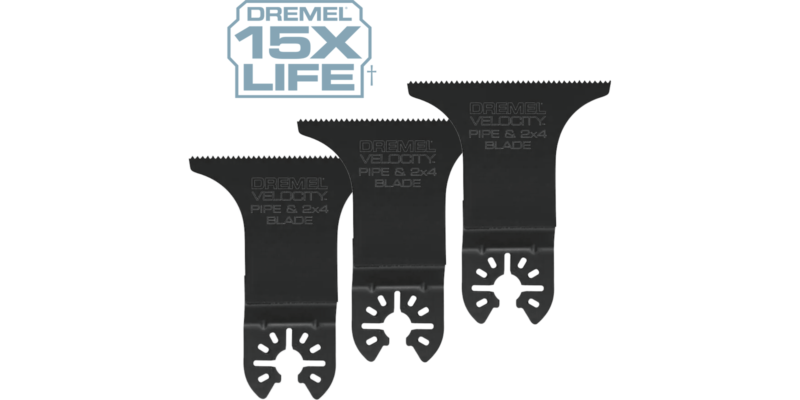 Universal Quick Fit blades are compatible with Dremel, Bosch, Makita, Milwaukee, and RockwellDremel bi-metal blades in wood with nails provide up to 15X life vs. standard bi-metal oscillating blades in wood with nailsBi-Metal blade material for high performance wood/metal cutting applicationsExtra-wide cutting edge adds control and convenienceCutting 2×4 and pipes in one pass and with low vibration