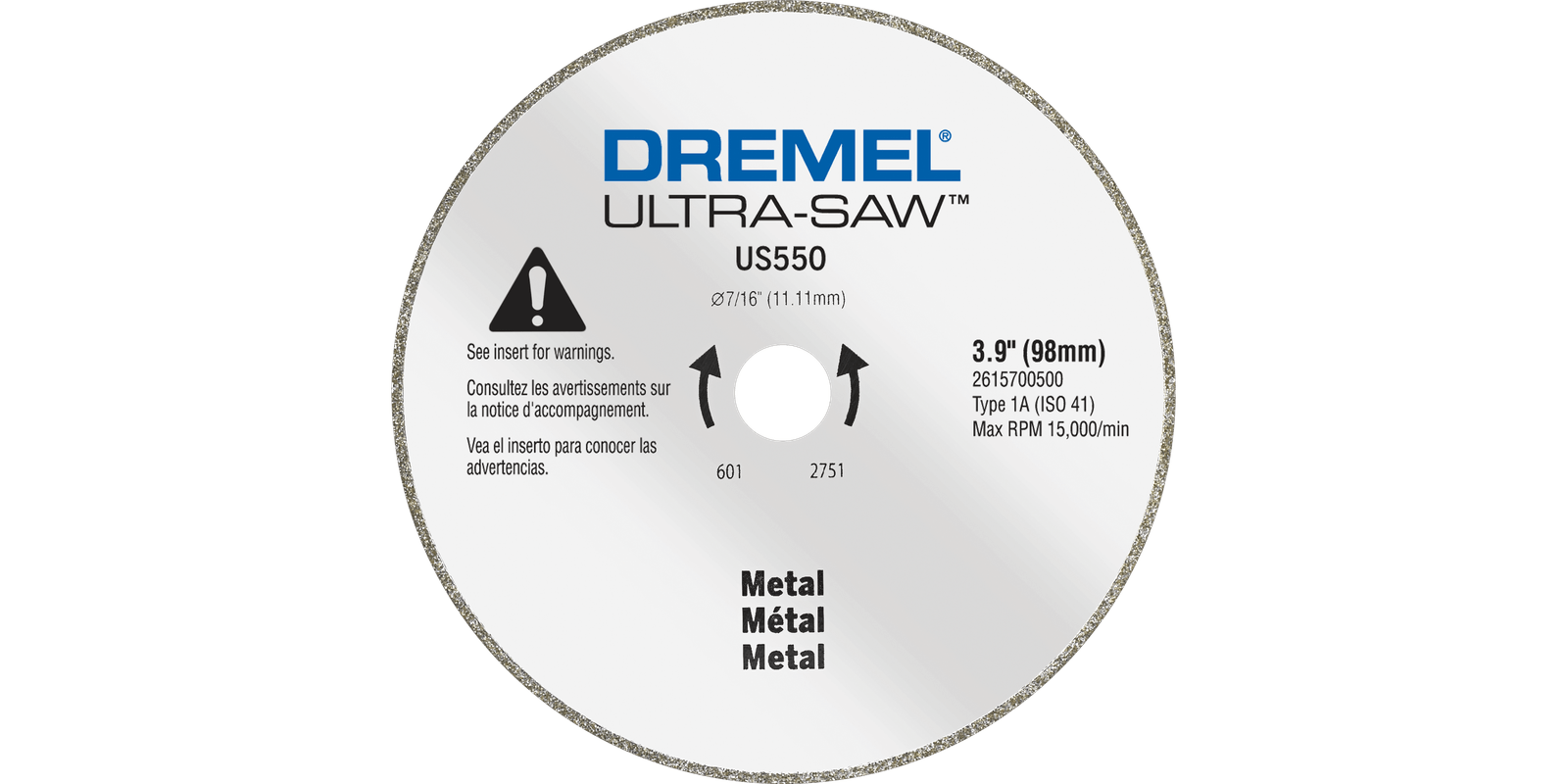 4" Premium diamond grit for longer life in metal cutting applications.Ideal for cutting conduit, copper pipe, threaded rod, angle iron, sheet metal and more 20X Life compared to Dremel’s other metal cutting wheels.Wheel diameter maintains depth of cut- does not shrink during use.Compatible with all Dremel corded and cordless Ultra-Saws.